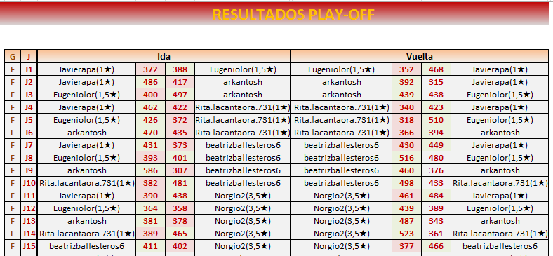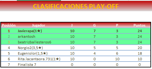 Pocos play off están tan reñidos.Enhorabuena a los tres!!!!