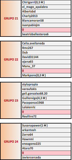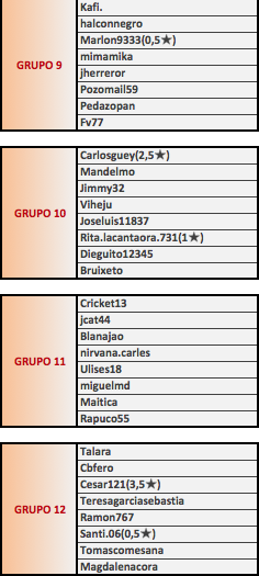 INICIO: las partidas serán iniciadas por el jugador situado a la IZQUIERDA en la tabla de partidas. Pasadas 24 horas desde la publicación de los emparejamientos, el jugador de la derecha podrá comenzarla SIN sumar ninguna bonificación. Pasadas 72 horas desde la publicación de emparejamientos el jugador de la derecha podrá iniciar la partida sumándose un bonus de 50 puntos extra al final de la partida.