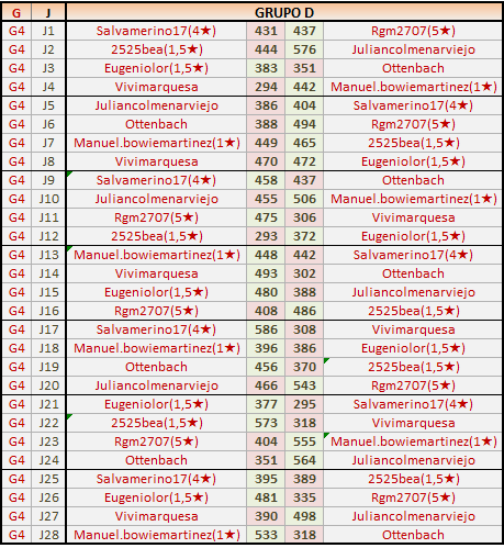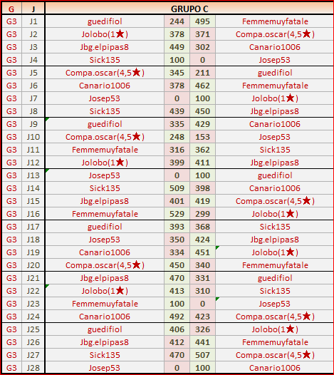 Deja un comentarioEn está página se irán publicando los resultados de las diferentes partidas, siendo ambos jugadores los responsables de subirlos, o comprobando que ya hayan sido subidos, insertando un COMENTARIO en la parte inferior de la pantalla (opción “Deja tu comentario“), indicando el nombre de los dos jugadores y los puntos obtenidos en la partida.