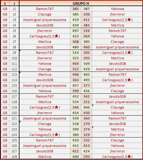 Deja un comentarioEn está página se irán publicando los resultados de las diferentes partidas, siendo ambos jugadores los responsables de subirlos, o comprobando que ya hayan sido subidos, insertando un COMENTARIO en la parte inferior de la pantalla (opción “Deja tu comentario“), indicando el nombre de los dos jugadores y los puntos obtenidos en la partida.