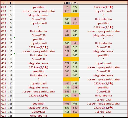 Deja un comentarioEn está página se irán publicando los resultados de las diferentes partidas, siendo ambos jugadores los responsables de subirlos, o comprobando que ya hayan sido subidos, insertando un COMENTARIO en la parte inferior de la pantalla (opción “Deja tu comentario“), indicando el nombre de los dos jugadores y los puntos obtenidos en la partida.