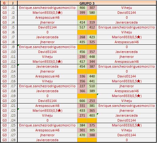 Deja un comentarioEn está página se irán publicando los resultados de las diferentes partidas, siendo ambos jugadores los responsables de subirlos, o comprobando que ya hayan sido subidos, insertando un COMENTARIO en la parte inferior de la pantalla (opción “Deja tu comentario“), indicando el nombre de los dos jugadores y los puntos obtenidos en la partida.