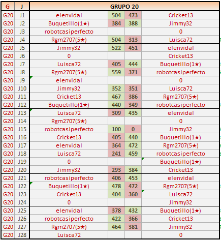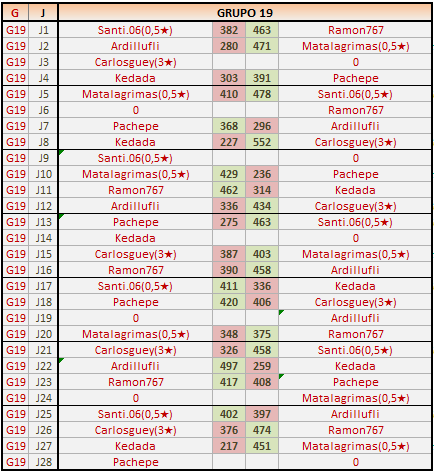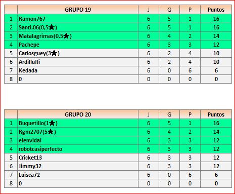 Deja un comentarioEn está página se irán publicando los resultados de las diferentes partidas, siendo ambos jugadores los responsables de subirlos, o comprobando que ya hayan sido subidos, insertando un COMENTARIO en la parte inferior de la pantalla (opción “Deja tu comentario“), indicando el nombre de los dos jugadores y los puntos obtenidos en la partida.