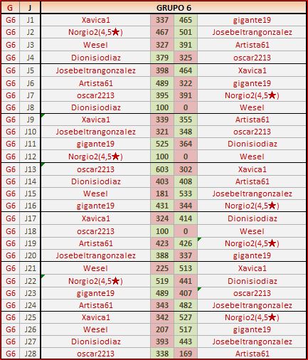 Deja un comentarioEn está página se irán publicando los resultados de las diferentes partidas, siendo ambos jugadores los responsables de subirlos, o comprobando que ya hayan sido subidos, insertando un COMENTARIO en la parte inferior de la pantalla (opción “Deja tu comentario“), indicando el nombre de los dos jugadores y los puntos obtenidos en la partida.