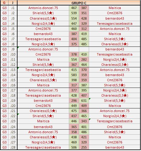 Deja un comentarioEn está página se irán publicando los resultados de las diferentes partidas, siendo ambos jugadores los responsables de subirlos, o comprobando que ya hayan sido subidos, insertando un COMENTARIO en la parte inferior de la pantalla (opción “Deja tu comentario“), indicando el nombre de los dos jugadores y los puntos obtenidos en la partida.
