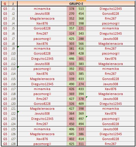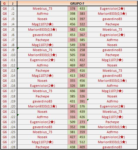 Deja un comentarioEn está página se irán publicando los resultados de las diferentes partidas, siendo ambos jugadores los responsables de subirlos, o comprobando que ya hayan sido subidos, insertando un COMENTARIO en la parte inferior de la pantalla (opción “Deja tu comentario“), indicando el nombre de los dos jugadores y los puntos obtenidos en la partida.