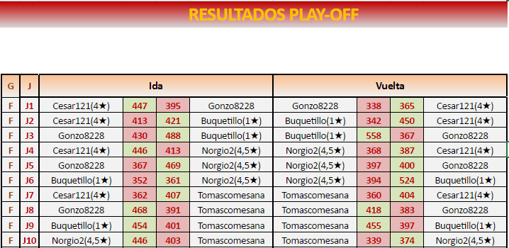 Y ooootro campeonato para don César, enhorabuena maquinola!! Sensacional segunda vuelta ganando todas tus partidas a domicilio, eso solo lo hacen los cracks! Espero, y además estoy seguro, que vas a seguir sumando más y más estrellas…. pero si puede ser, hazlo en los torneos que yo no llegue al play-off, te estaré muy agradecido jajaja. A los demás enhorabuena por llegar hasta aquí, en especial a Sergio por su tercer puesto y porque es otro crack!!