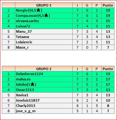 Deja un comentarioEn está página se irán publicando los resultados de las diferentes partidas, siendo ambos jugadores los responsables de subirlos, o comprobando que ya hayan sido subidos, insertando un COMENTARIO en la parte inferior de la pantalla (opción “Deja tu comentario“), indicando el nombre de los dos jugadores y los puntos obtenidos en la partida.