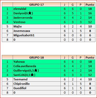 Deja un comentarioEn está página se irán publicando los resultados de las diferentes partidas, siendo ambos jugadores los responsables de subirlos, o comprobando que ya hayan sido subidos, insertando un COMENTARIO en la parte inferior de la pantalla (opción “Deja tu comentario“), indicando el nombre de los dos jugadores y los puntos obtenidos en la partida.