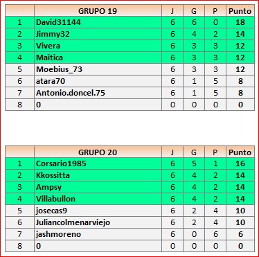 Deja un comentarioEn está página se irán publicando los resultados de las diferentes partidas, siendo ambos jugadores los responsables de subirlos, o comprobando que ya hayan sido subidos, insertando un COMENTARIO en la parte inferior de la pantalla (opción “Deja tu comentario“), indicando el nombre de los dos jugadores y los puntos obtenidos en la partida.