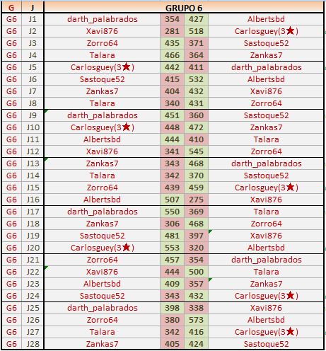 Deja un comentarioEn está página se irán publicando los resultados de las diferentes partidas, siendo ambos jugadores los responsables de subirlos, o comprobando que ya hayan sido subidos, insertando un COMENTARIO en la parte inferior de la pantalla (opción “Deja tu comentario“), indicando el nombre de los dos jugadores y los puntos obtenidos en la partida.