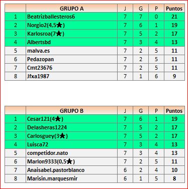 Deja un comentarioEn está página se irán publicando los resultados de las diferentes partidas, siendo ambos jugadores los responsables de subirlos, o comprobando que ya hayan sido subidos, insertando un COMENTARIO en la parte inferior de la pantalla (opción “Deja tu comentario“), indicando el nombre de los dos jugadores y los puntos obtenidos en la partida.