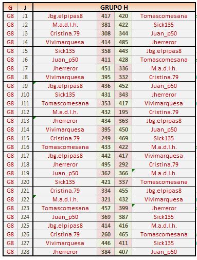Deja un comentarioEn está página se irán publicando los resultados de las diferentes partidas, siendo ambos jugadores los responsables de subirlos, o comprobando que ya hayan sido subidos, insertando un COMENTARIO en la parte inferior de la pantalla (opción “Deja tu comentario“), indicando el nombre de los dos jugadores y los puntos obtenidos en la partida.