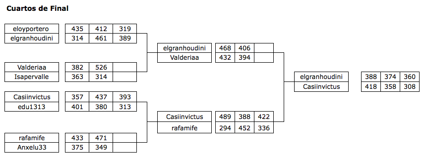 En las eliminatorias podéis dejar vuestro resultado una vez finalizadas las 3 partidas.