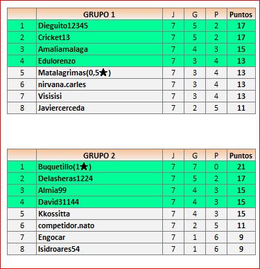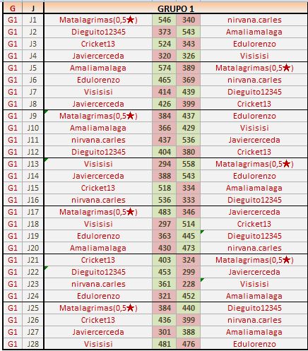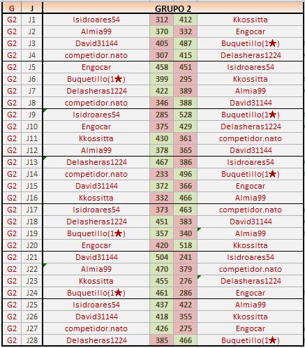 En está página se irán publicando los resultados de las diferentes partidas, siendo ambos jugadores los responsables de subirlos, o comprobando que ya hayan sido subidos, insertando un COMENTARIO en la parte inferior de la pantalla (opción “Deja tu comentario“), indicando el nombre de los dos jugadores y los puntos obtenidos en la partida.