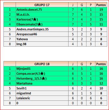 Deja un comentarioEn está página se irán publicando los resultados de las diferentes partidas, siendo ambos jugadores los responsables de subirlos, o comprobando que ya hayan sido subidos, insertando un COMENTARIO en la parte inferior de la pantalla (opción “Deja tu comentario“), indicando el nombre de los dos jugadores y los puntos obtenidos en la partida.