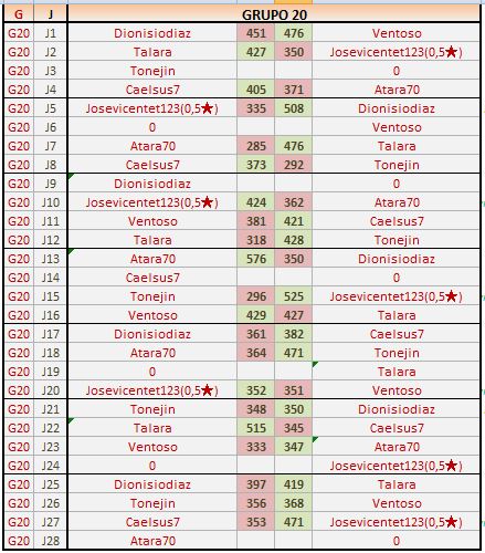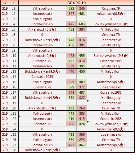 Deja un comentarioEn está página se irán publicando los resultados de las diferentes partidas, siendo ambos jugadores los responsables de subirlos, o comprobando que ya hayan sido subidos, insertando un COMENTARIO en la parte inferior de la pantalla (opción “Deja tu comentario“), indicando el nombre de los dos jugadores y los puntos obtenidos en la partida.