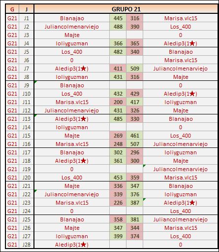 Deja un comentarioEn está página se irán publicando los resultados de las diferentes partidas, siendo ambos jugadores los responsables de subirlos, o comprobando que ya hayan sido subidos, insertando un COMENTARIO en la parte inferior de la pantalla (opción “Deja tu comentario“), indicando el nombre de los dos jugadores y los puntos obtenidos en la partida.