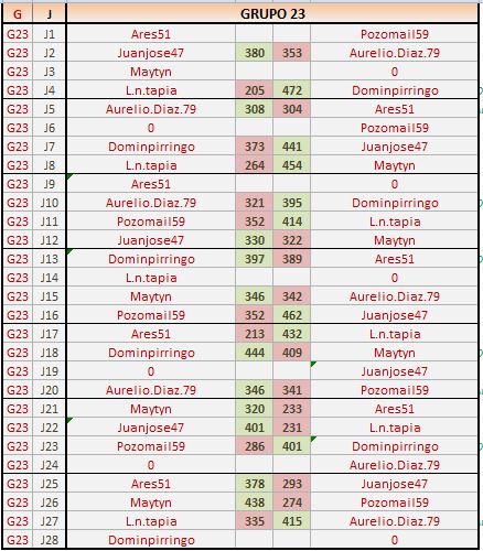 Deja un comentarioEn está página se irán publicando los resultados de las diferentes partidas, siendo ambos jugadores los responsables de subirlos, o comprobando que ya hayan sido subidos, insertando un COMENTARIO en la parte inferior de la pantalla (opción “Deja tu comentario“), indicando el nombre de los dos jugadores y los puntos obtenidos en la partida.
