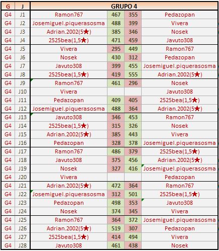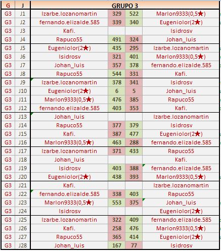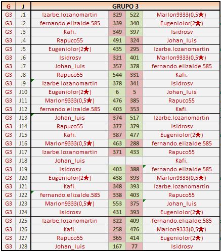 Deja un comentarioEn está página se irán publicando los resultados de las diferentes partidas, siendo ambos jugadores los responsables de subirlos, o comprobando que ya hayan sido subidos, insertando un COMENTARIO en la parte inferior de la pantalla (opción “Deja tu comentario“), indicando el nombre de los dos jugadores y los puntos obtenidos en la partida.