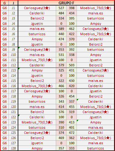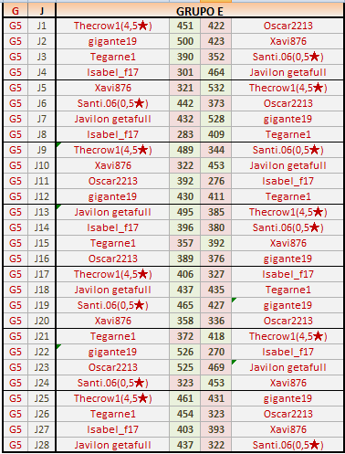 Deja un comentarioEn está página se irán publicando los resultados de las diferentes partidas, siendo ambos jugadores los responsables de subirlos, o comprobando que ya hayan sido subidos, insertando un COMENTARIO en la parte inferior de la pantalla (opción “Deja tu comentario“), indicando el nombre de los dos jugadores y los puntos obtenidos en la partida.