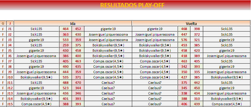 Felicitar a todos porque llegar a los playoff cada día cuesta más , pero esto me anima para volver a apuntarme a torneos individuales que por falta de tiempo los tenía olvidados, gracias a todos! Un saludo!