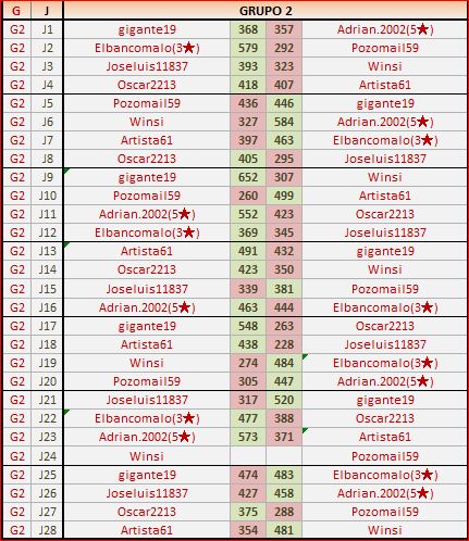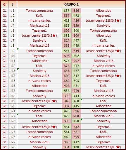 Deja un comentarioEn está página se irán publicando los resultados de las diferentes partidas, siendo ambos jugadores los responsables de subirlos, o comprobando que ya hayan sido subidos, insertando un COMENTARIO en la parte inferior de la pantalla (opción “Deja tu comentario“), indicando el nombre de los dos jugadores y los puntos obtenidos en la partida.