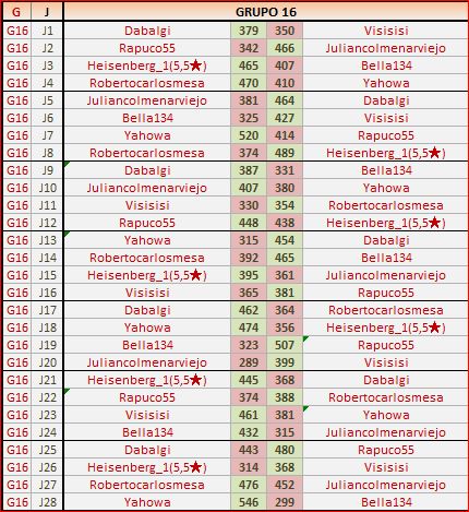 Deja un comentarioEn está página se irán publicando los resultados de las diferentes partidas, siendo ambos jugadores los responsables de subirlos, o comprobando que ya hayan sido subidos, insertando un COMENTARIO en la parte inferior de la pantalla (opción “Deja tu comentario“), indicando el nombre de los dos jugadores y los puntos obtenidos en la partida.