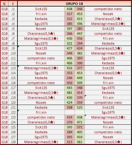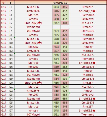 Deja un comentarioEn está página se irán publicando los resultados de las diferentes partidas, siendo ambos jugadores los responsables de subirlos, o comprobando que ya hayan sido subidos, insertando un COMENTARIO en la parte inferior de la pantalla (opción “Deja tu comentario“), indicando el nombre de los dos jugadores y los puntos obtenidos en la partida.
