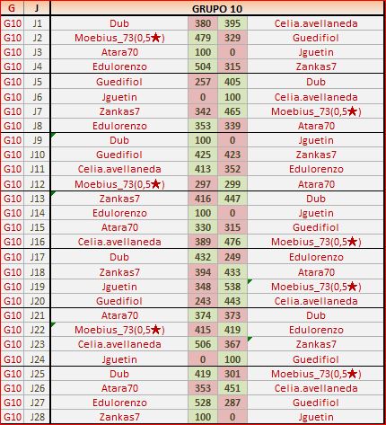 Deja un comentarioEn está página se irán publicando los resultados de las diferentes partidas, siendo ambos jugadores los responsables de subirlos, o comprobando que ya hayan sido subidos, insertando un COMENTARIO en la parte inferior de la pantalla (opción “Deja tu comentario“), indicando el nombre de los dos jugadores y los puntos obtenidos en la partida.