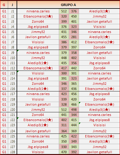 Deja un comentarioEn está página se irán publicando los resultados de las diferentes partidas, siendo ambos jugadores los responsables de subirlos, o comprobando que ya hayan sido subidos, insertando un COMENTARIO en la parte inferior de la pantalla (opción “Deja tu comentario“), indicando el nombre de los dos jugadores y los puntos obtenidos en la partida.