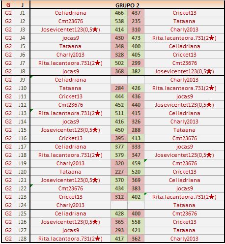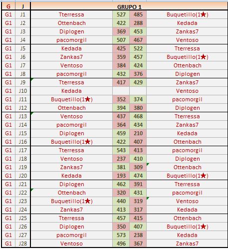 Deja un comentarioEn está página se irán publicando los resultados de las diferentes partidas, siendo ambos jugadores los responsables de subirlos, o comprobando que ya hayan sido subidos, insertando un COMENTARIO en la parte inferior de la pantalla (opción “Deja tu comentario“), indicando el nombre de los dos jugadores y los puntos obtenidos en la partida.