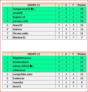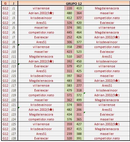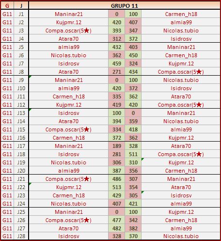 Deja un comentarioEn está página se irán publicando los resultados de las diferentes partidas, siendo ambos jugadores los responsables de subirlos, o comprobando que ya hayan sido subidos, insertando un COMENTARIO en la parte inferior de la pantalla (opción “Deja tu comentario“), indicando el nombre de los dos jugadores y los puntos obtenidos en la partida.
