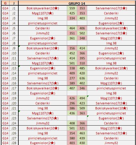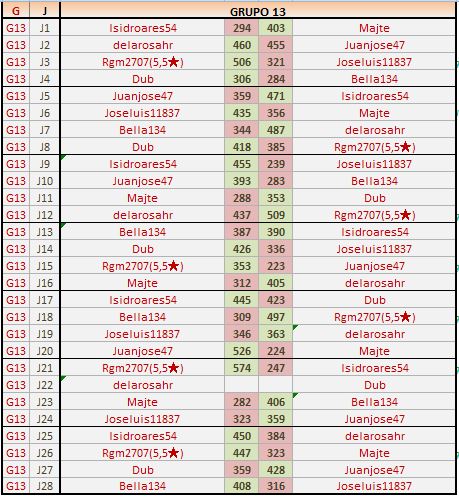 Deja un comentarioEn está página se irán publicando los resultados de las diferentes partidas, siendo ambos jugadores los responsables de subirlos, o comprobando que ya hayan sido subidos, insertando un COMENTARIO en la parte inferior de la pantalla (opción “Deja tu comentario“), indicando el nombre de los dos jugadores y los puntos obtenidos en la partida.