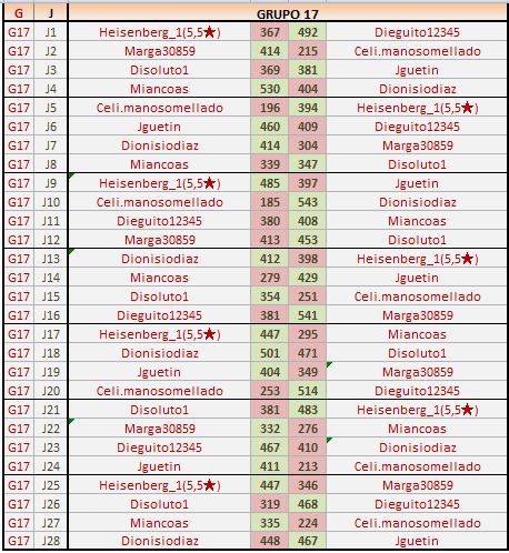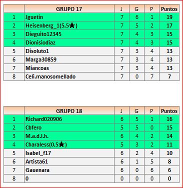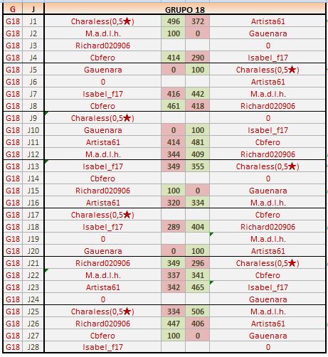 Deja un comentarioEn está página se irán publicando los resultados de las diferentes partidas, siendo ambos jugadores los responsables de subirlos, o comprobando que ya hayan sido subidos, insertando un COMENTARIO en la parte inferior de la pantalla (opción “Deja tu comentario“), indicando el nombre de los dos jugadores y los puntos obtenidos en la partida.