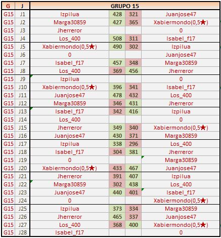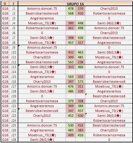 Deja un comentarioEn está página se irán publicando los resultados de las diferentes partidas, siendo ambos jugadores los responsables de subirlos, o comprobando que ya hayan sido subidos, insertando un COMENTARIO en la parte inferior de la pantalla (opción “Deja tu comentario“), indicando el nombre de los dos jugadores y los puntos obtenidos en la partida.