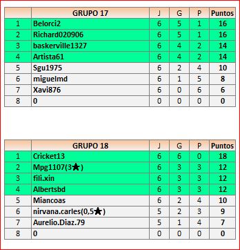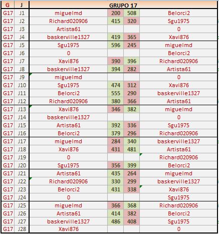 Deja un comentarioEn está página se irán publicando los resultados de las diferentes partidas, siendo ambos jugadores los responsables de subirlos, o comprobando que ya hayan sido subidos, insertando un COMENTARIO en la parte inferior de la pantalla (opción “Deja tu comentario“), indicando el nombre de los dos jugadores y los puntos obtenidos en la partida.