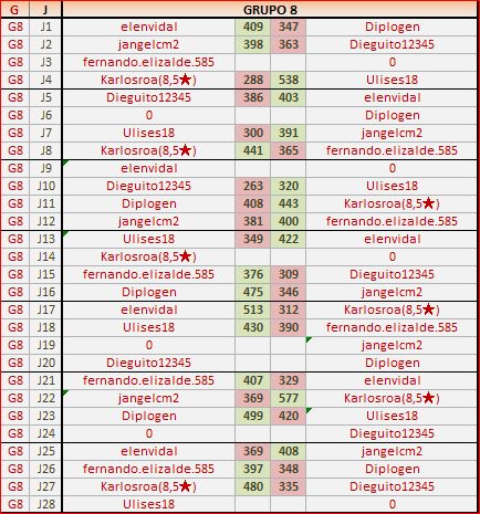 Deja un comentarioEn está página se irán publicando los resultados de las diferentes partidas, siendo ambos jugadores los responsables de subirlos, o comprobando que ya hayan sido subidos, insertando un COMENTARIO en la parte inferior de la pantalla (opción “Deja tu comentario“), indicando el nombre de los dos jugadores y los puntos obtenidos en la partida.