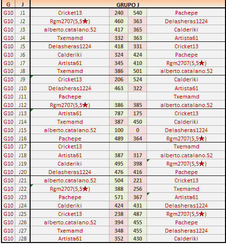 Deja un comentarioEn está página se irán publicando los resultados de las diferentes partidas, siendo ambos jugadores los responsables de subirlos, o comprobando que ya hayan sido subidos, insertando un COMENTARIO en la parte inferior de la pantalla (opción “Deja tu comentario“), indicando el nombre de los dos jugadores y los puntos obtenidos en la partida.