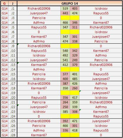 Deja un comentarioEn está página se irán publicando los resultados de las diferentes partidas, siendo ambos jugadores los responsables de subirlos, o comprobando que ya hayan sido subidos, insertando un COMENTARIO en la parte inferior de la pantalla (opción “Deja tu comentario“), indicando el nombre de los dos jugadores y los puntos obtenidos en la partida.