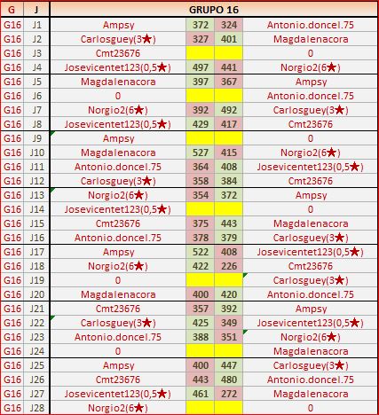 Deja un comentarioEn está página se irán publicando los resultados de las diferentes partidas, siendo ambos jugadores los responsables de subirlos, o comprobando que ya hayan sido subidos, insertando un COMENTARIO en la parte inferior de la pantalla (opción “Deja tu comentario“), indicando el nombre de los dos jugadores y los puntos obtenidos en la partida.