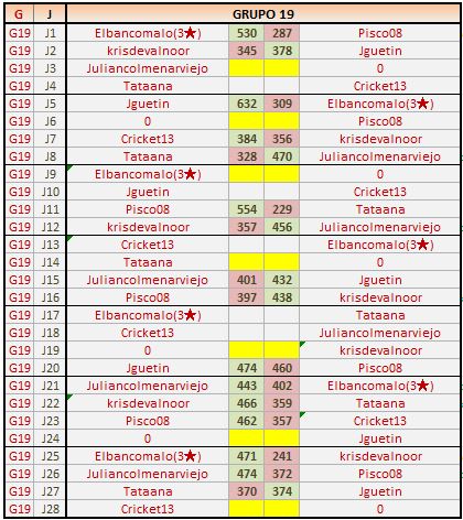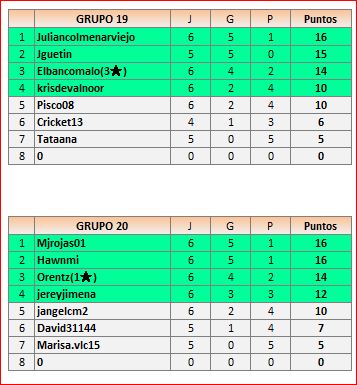 Deja un comentarioEn está página se irán publicando los resultados de las diferentes partidas, siendo ambos jugadores los responsables de subirlos, o comprobando que ya hayan sido subidos, insertando un COMENTARIO en la parte inferior de la pantalla (opción “Deja tu comentario“), indicando el nombre de los dos jugadores y los puntos obtenidos en la partida.