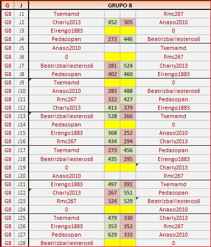 Deja un comentarioEn está página se irán publicando los resultados de las diferentes partidas, siendo ambos jugadores los responsables de subirlos, o comprobando que ya hayan sido subidos, insertando un COMENTARIO en la parte inferior de la pantalla (opción “Deja tu comentario“), indicando el nombre de los dos jugadores y los puntos obtenidos en la partida.