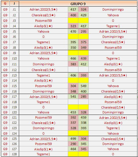 Deja un comentarioEn está página se irán publicando los resultados de las diferentes partidas, siendo ambos jugadores los responsables de subirlos, o comprobando que ya hayan sido subidos, insertando un COMENTARIO en la parte inferior de la pantalla (opción “Deja tu comentario“), indicando el nombre de los dos jugadores y los puntos obtenidos en la partida.