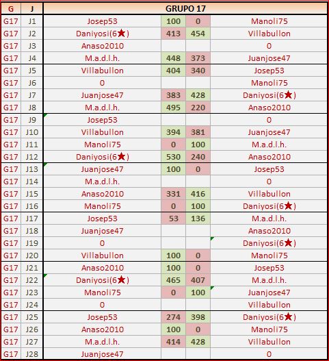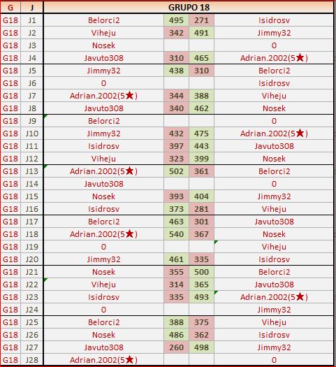 Deja un comentarioEn está página se irán publicando los resultados de las diferentes partidas, siendo ambos jugadores los responsables de subirlos, o comprobando que ya hayan sido subidos, insertando un COMENTARIO en la parte inferior de la pantalla (opción “Deja tu comentario“), indicando el nombre de los dos jugadores y los puntos obtenidos en la partida.