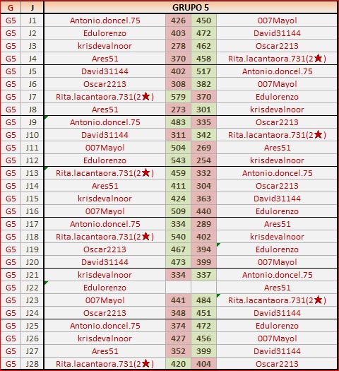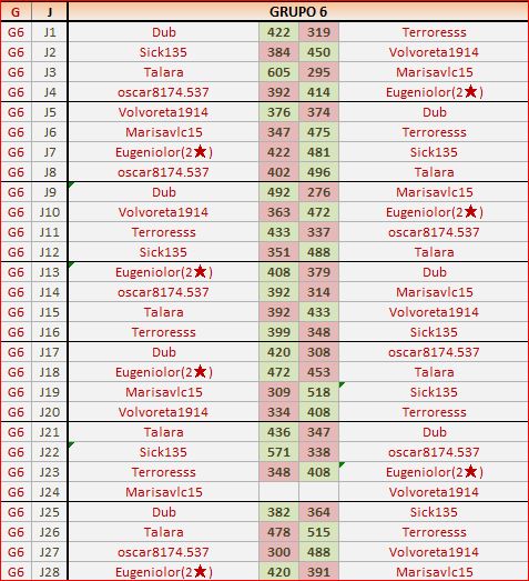 Deja un comentarioEn está página se irán publicando los resultados de las diferentes partidas, siendo ambos jugadores los responsables de subirlos, o comprobando que ya hayan sido subidos, insertando un COMENTARIO en la parte inferior de la pantalla (opción “Deja tu comentario“), indicando el nombre de los dos jugadores y los puntos obtenidos en la partida.
