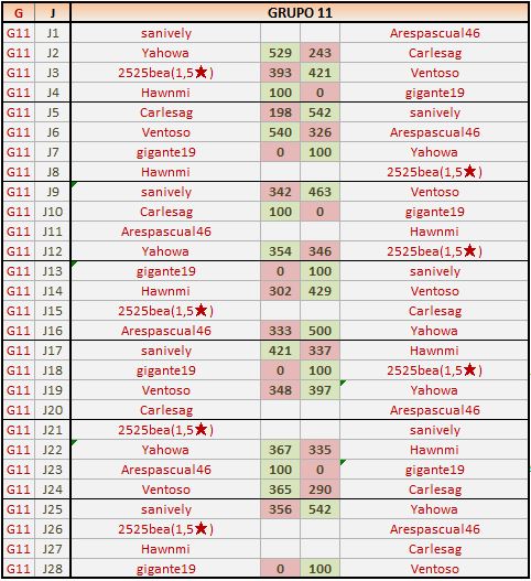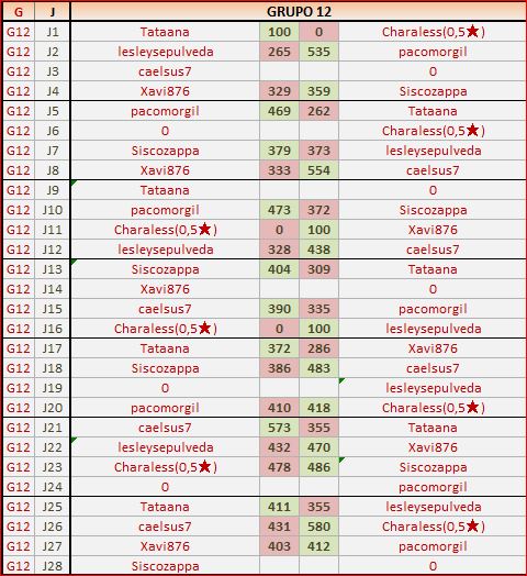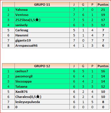 Deja un comentarioEn está página se irán publicando los resultados de las diferentes partidas, siendo ambos jugadores los responsables de subirlos, o comprobando que ya hayan sido subidos, insertando un COMENTARIO en la parte inferior de la pantalla (opción “Deja tu comentario“), indicando el nombre de los dos jugadores y los puntos obtenidos en la partida.