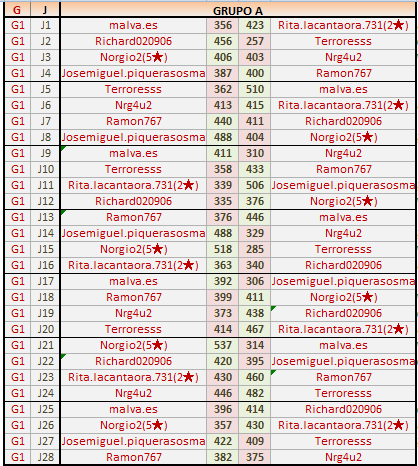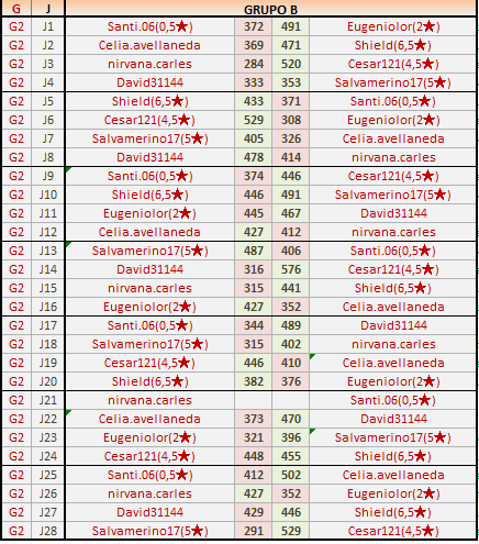 Deja un comentarioEn está página se irán publicando los resultados de las diferentes partidas, siendo ambos jugadores los responsables de subirlos, o comprobando que ya hayan sido subidos, insertando un COMENTARIO en la parte inferior de la pantalla (opción “Deja tu comentario“), indicando el nombre de los dos jugadores y los puntos obtenidos en la partida.