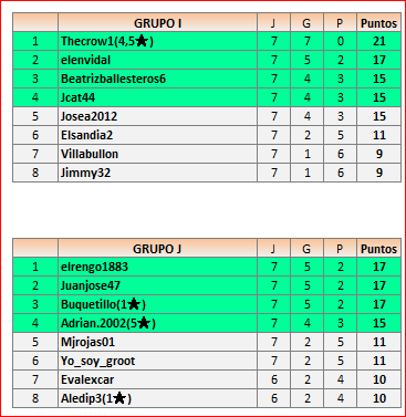 Deja un comentarioEn está página se irán publicando los resultados de las diferentes partidas, siendo ambos jugadores los responsables de subirlos, o comprobando que ya hayan sido subidos, insertando un COMENTARIO en la parte inferior de la pantalla (opción “Deja tu comentario“), indicando el nombre de los dos jugadores y los puntos obtenidos en la partida.