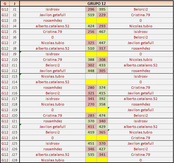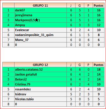 Deja un comentarioEn está página se irán publicando los resultados de las diferentes partidas, siendo ambos jugadores responsables de subirlos o de comprobar que ya hayan sido publicados, insertando un COMENTARIO en la parte inferior de la pantalla (opción “Deja tu comentario”), indicando el nombre de los dos jugadores y los puntos obtenidos en la partida.